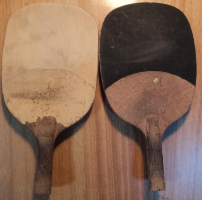 霹雳重剑:140元收自精英球友,我嫌其板面偏大,自己将其改为KKT-D50板面,性能不错,拉、打、控制 较为均衡;为不错的练习拍。