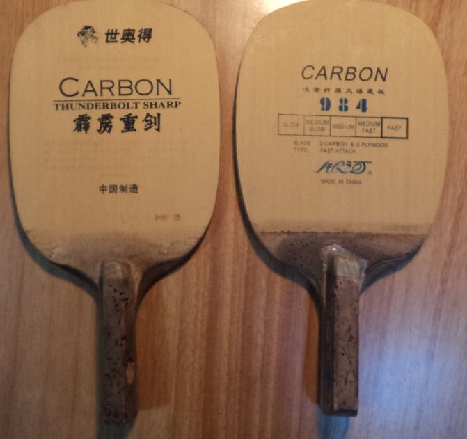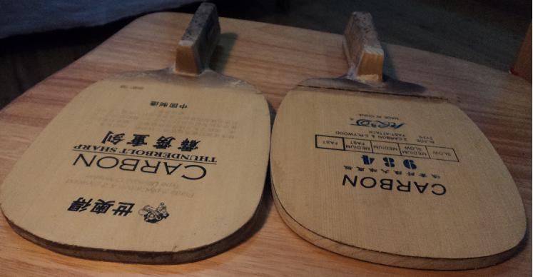 银河984:94 元网购于yinglian,真正的暴力猛货(个人觉得比霹雳重剑猛),配上729-08ES胶皮,其推挡速度和力量是我用我的拍子中最大的,动作到位的话,其拉球力量和速度都很暴,但此拍的控制相对差点,考验你我的功夫!