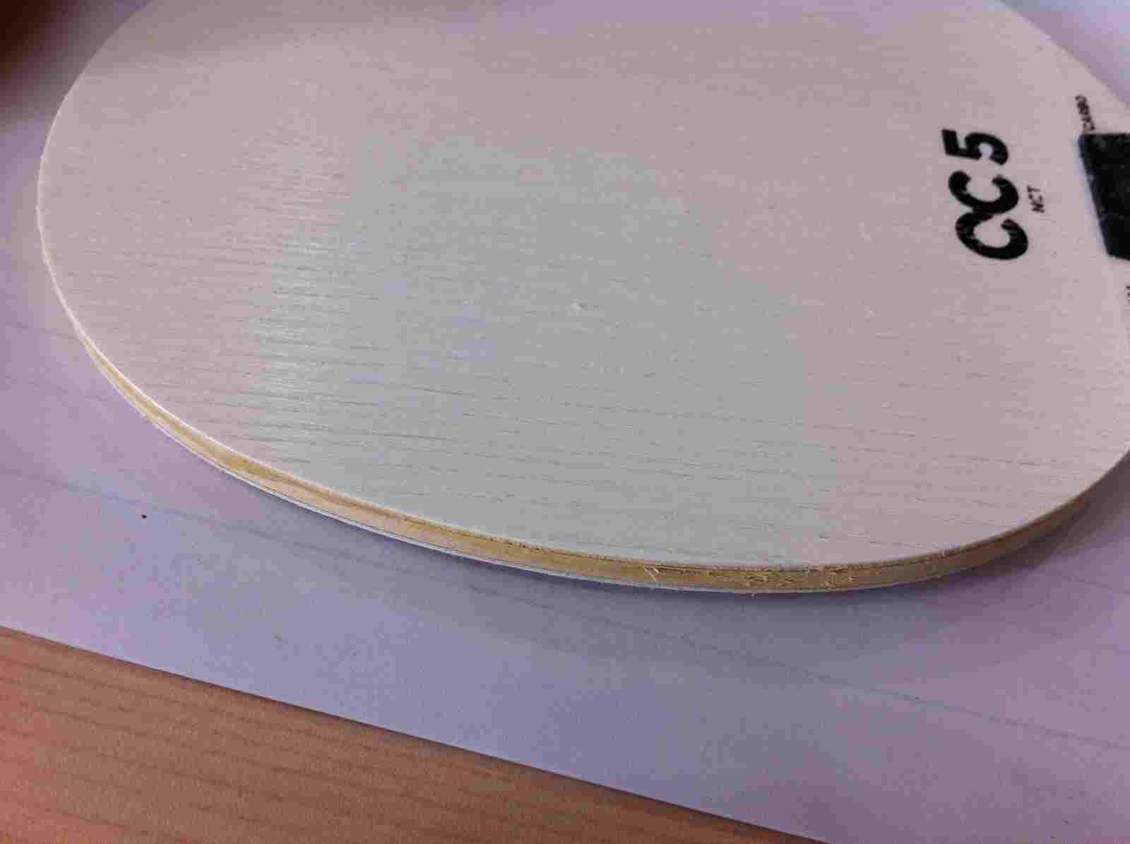 上周刚买的欧版CC5,在莹恋购得!板子面子有细微的起毛现象,非常细微。这是斯蒂卡板子的通病!望球友谅解!板子侧边缘有一处拉丝现象。拍柄侧部买来时有一处护边木片断层,图片上可以看到。板子性能总体还是不错的。