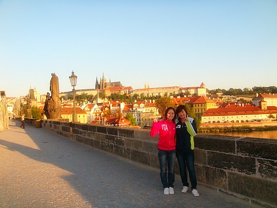 师妹跟李倩一早傻呼呼的跑去布拉格查理士桥看日出