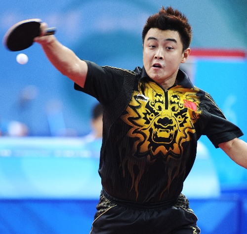 北京,2008年8月14日 (北京奥运)(16)乒乓球——男团小组赛:中国战胜澳大利亚 8月14日,中国选手王皓在比赛中回球。当日,中国队在北京奥运会乒乓球男子团体A组比赛中以3比0战胜澳大利亚队。 新华社记者徐家军摄