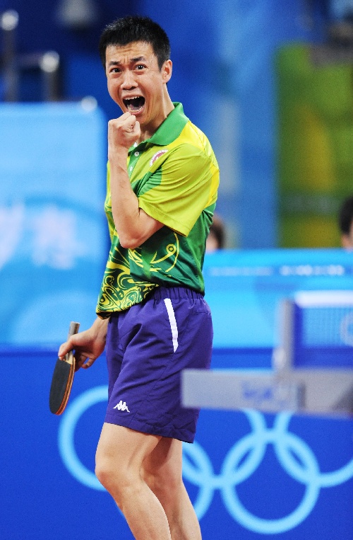 新华社照片,北京,2008年8月17日 (北京奥运)(11)乒乓球——男团:中国香港队无缘奖牌 8月17日,中国香港选手李静在比赛中庆祝得分。当日,中国香港队在北京奥运会乒乓球男子团体铜牌附加赛中以1比3负于韩国队,无缘奖牌。 新华社记者徐家军摄