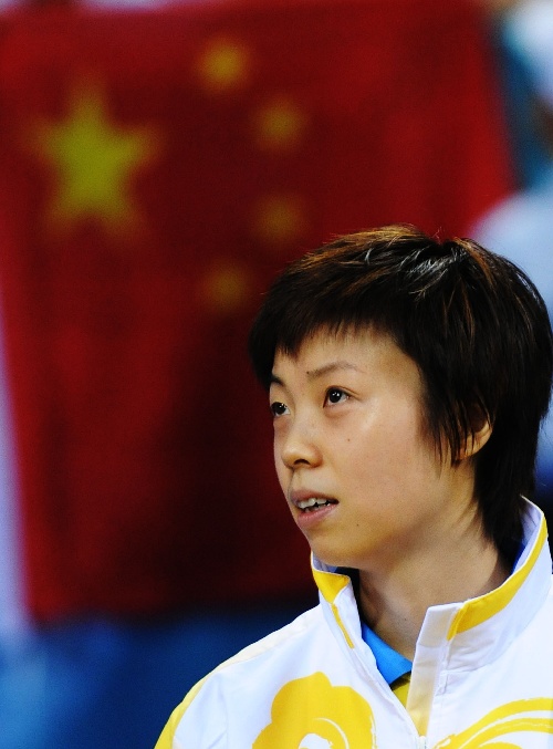 张怡宁获女单金牌 张怡宁在领奖台上