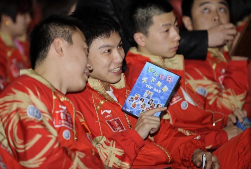 国乒出征世锦赛壮行仪式 马琳陈玘哥俩好