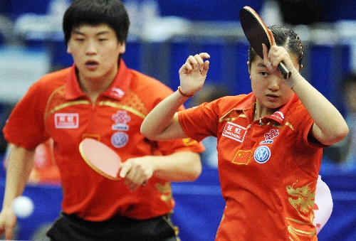 横滨(日本),2009年4月29日 (体育)(2)乒乓球——世乒赛:郝帅/常晨晨首轮获胜 4月29日,中国选手郝帅/常晨晨(右)在比赛中。当日,郝帅/常晨晨组合在第50届世乒赛混双正选赛首轮比赛中以4比1战胜马来西亚的许茂盛/崔苏珍组合,晋级下一轮。 新华社记者徐家军摄