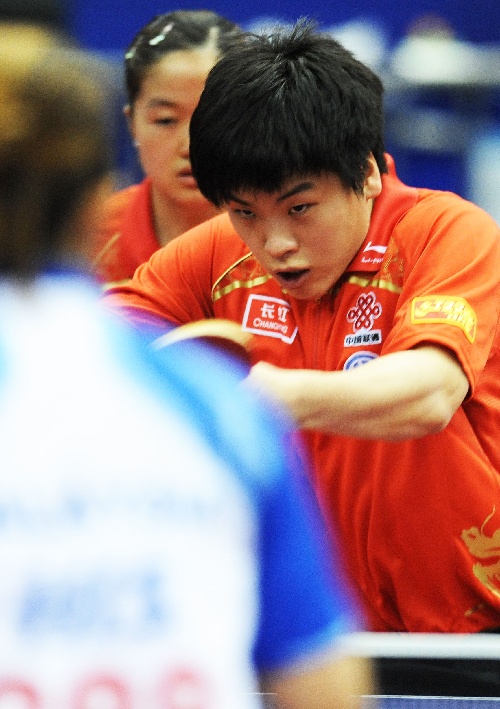 横滨(日本),2009年4月29日 (体育)(3)乒乓球——世乒赛:郝帅/常晨晨首轮获胜 4月29日,中国选手郝帅(前)/常晨晨在比赛中。当日,郝帅/常晨晨组合在第50届世乒赛混双正选赛首轮比赛中以4比1战胜马来西亚的许茂盛/崔苏珍组合,晋级下一轮。 新华社记者徐家军摄