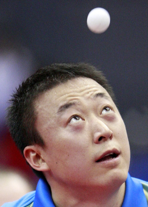 横滨,2009年4月30日 (体育)(2)乒乓球——世乒赛:马琳晋级 4月30日,中国选手马琳在比赛中发球。当日,在第50届世乒赛男子单打首轮比赛中,马琳以4比2战胜西班牙选手卡内罗斯,顺利晋级。 新华社记者任正来摄