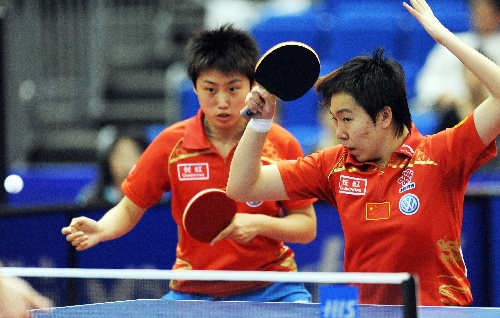 横滨,2009年4月30日 (体育)(2)乒乓球——世乒赛:郭跃/李晓霞晋级 4月30日,中国选手郭跃/李晓霞(右)在比赛中。当日,在第50届世乒赛女双首轮比赛中,郭跃/李晓霞以4比1战胜法国选手格伦迪什/马滕特,顺利晋级。 新华社记者徐家军摄