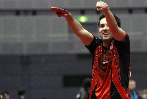横滨,2009年4月30日 (体育)(11)乒乓球——世乒赛:男单第二轮赛况 4月30日,斯洛文尼亚选手托基奇庆祝胜利。当日,在日本横滨体育馆进行的第50届世界乒乓球锦标赛男子单打第二轮比赛中,托基奇以4比1战胜韩国选手柳承敏。 新华社记者毕明明摄