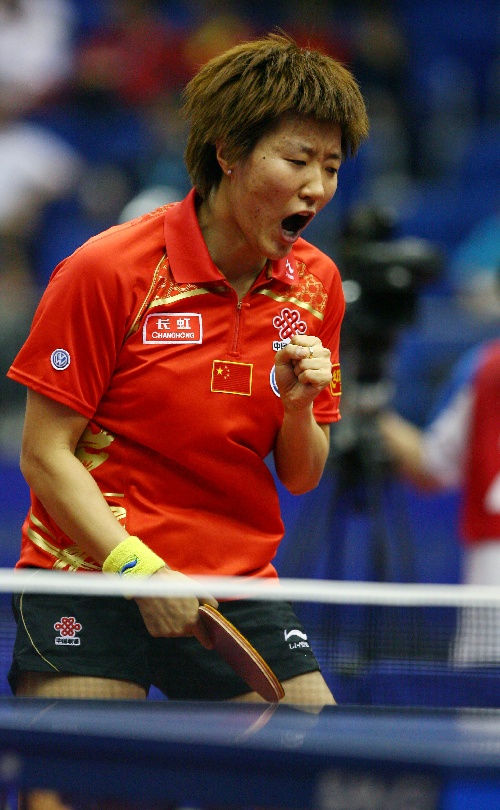 横滨,2009年5月1日 (体育)(3)乒乓球——世乒赛:郭焱晋级 5月1日,中国选手郭焱在比赛中为自己鼓劲。当日,在日本横滨进行的第50届世乒赛女子单打第三轮比赛中,郭焱以4比1战胜韩国选手朴英淑,顺利晋级。 新华社记者毕明明摄
