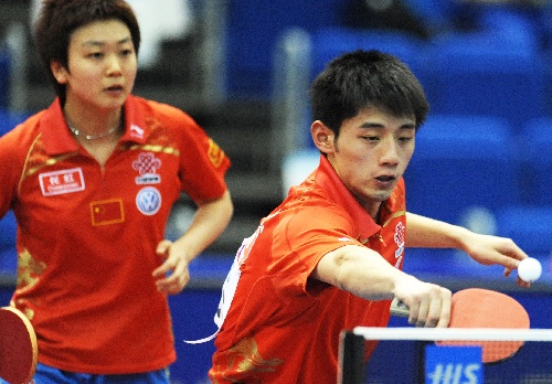 横滨,2009年5月1日 (体育)(1)乒乓球——世乒赛:张继科/木子挺进混双八强 5月1日,中国选手张继科(右)/木子在比赛中。当日,在日本横滨进行的第50届世乒赛混双第四轮比赛中,张继科/木子以4比1战胜中国香港选手唐鹏/姜华珺,晋级八强。 新华社记者徐家军摄