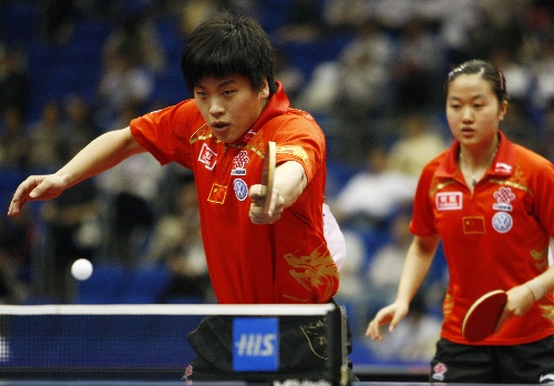 横滨,2009年5月2日 (体育)(11)乒乓球——世乒赛:混双四分之一决赛赛况 5月2日,郝帅/常晨晨(右)在比赛中。当日,中国选手郝帅/常晨晨在日本横滨举行的第50届世乒赛混双四分之一决赛中,以4比1战胜中国香港选手高礼泽/帖雅娜,跻身四强。 新华社记者毕明明摄