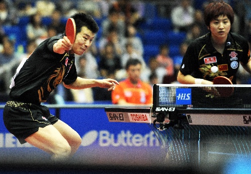 横滨(日本),2009年5月2日 (体育)(5)乒乓球——世乒赛:混双四分之一决赛赛况 5月2日,中国选手张超(左)/姚彦在比赛中。当日,在日本横滨举行的第50届世乒赛混双四分之一决赛中,中国选手张超/姚彦组合以4比3战胜斯洛伐克选手皮斯特吉/奥多洛娃,挺进四强。 新华社记者徐家军摄