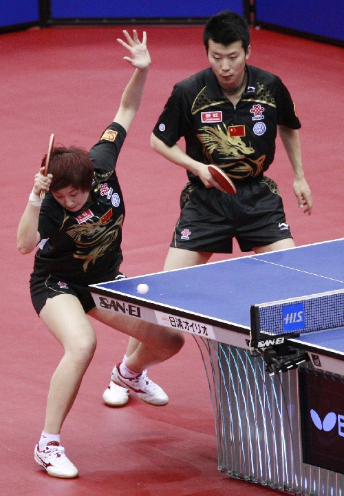 横滨(日本),2009年5月2日 (体育)(25)乒乓球——世乒赛:混双四分之一决赛赛况 5月2日,张超(右)/姚彦在比赛中。当日,在日本横滨举行的第50届世乒赛混双四分之一决赛中,中国选手张超/姚彦以4比3战胜斯洛伐克选手皮斯特吉/奥多洛娃,挺进四强。 新华社记者任正来摄