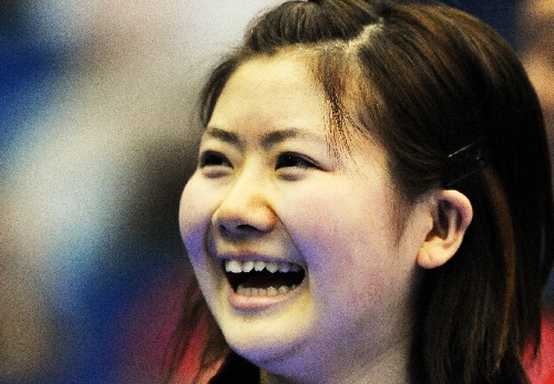 横滨,2009年5月2日 (体育)(9)乒乓球——世乒赛:“瓷娃娃”女双晋级 5月2日,福原爱赛后露出灿烂的笑容。当日,在日本横滨举行的第50届世乒赛女双第三轮比赛中,日本选手福原爱/平野早矢香以4比2战胜德国组合沃西/吴佳多,挺进下一轮。 新华社记者徐家军摄