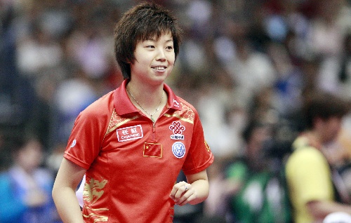 横滨,2009年5月2日 (体育)(2)乒乓球——世乒赛:女单八分之一决赛 5月2日,张怡宁在赛后微笑。当日,在日本横滨举行的第50届世乒赛女单八分之一决赛中,张怡宁以4比0战胜匈牙利选手托特,进入八强。 新华社记者任正来摄