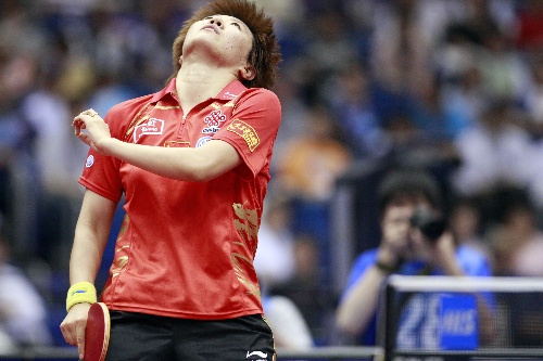 横滨,2009年5月2日 (体育)(12)乒乓球——世乒赛:女单八分之一决赛 5月2日,郭焱在失分后十分懊恼。当日,在日本横滨举行的第50届世乒赛女单八分之一决赛中,中国选手郭焱以0比4不敌队友刘诗雯,无缘下一轮。 新华社记者任正来摄