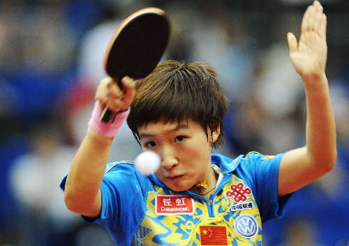横滨,2009年5月2日 (体育)(13)乒乓球——世乒赛:女单八分之一决赛 5月2日,刘诗雯在比赛中。当日,在日本横滨举行的第50届世乒赛女单八分之一决赛中,中国选手刘诗雯以4比0战胜队友郭焱,挺进下一轮。 新华社记者徐家军摄