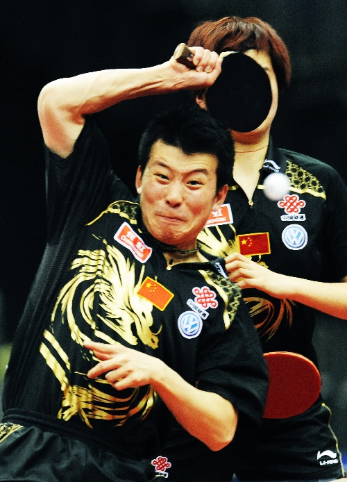横滨,2009年5月2日 (体育)(14)乒乓球——世乒赛:混双半决赛赛况 5月2日,张超(前)/姚彦在比赛中。当日,在日本横滨举行的第50届世乒赛混双半决赛中,中国选手张超/姚彦以2比4不敌队友李平/曹臻,无缘决赛。 新华社记者徐家军摄