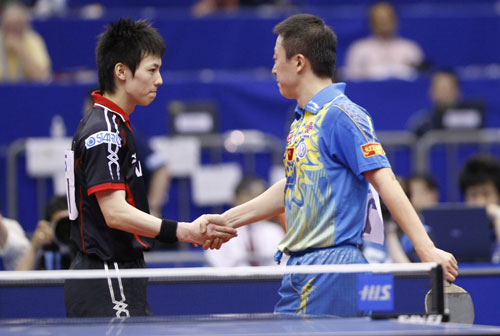 马琳4-3险胜松平健太 赛后双方握手致意