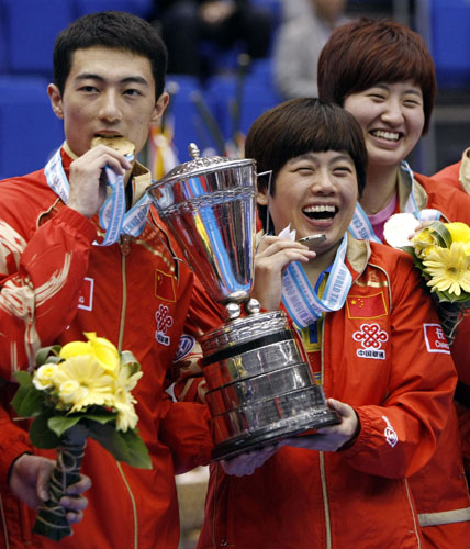 世乒赛李平/曹臻混双夺冠 品尝金牌味道