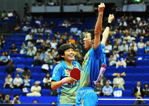 世乒赛李平/曹臻混双夺冠 李平双臂高举