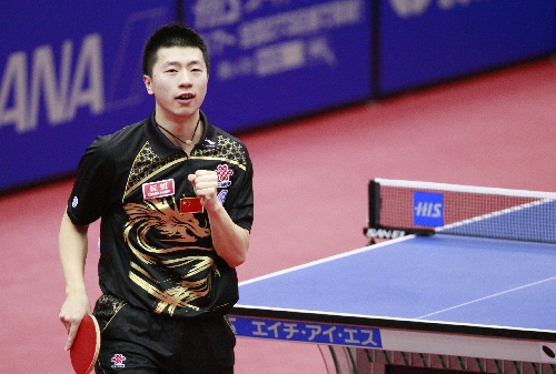 横滨,2009年5月3日 (体育)(3)乒乓球——世乒赛: 男单四分之一决赛赛况 5月3日,中国选手马龙在比赛中庆祝得分。当日,马龙在第50届世乒赛男单四分之一决赛中,以4比0战胜丹麦选手梅兹,挺进四强。 新华社记者任正来摄