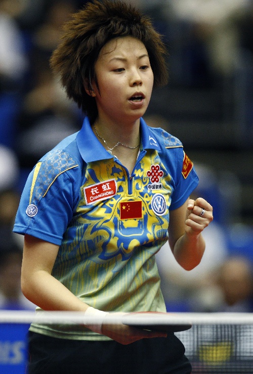 张怡宁4-1胜晋级半决赛 张怡宁握拳庆祝