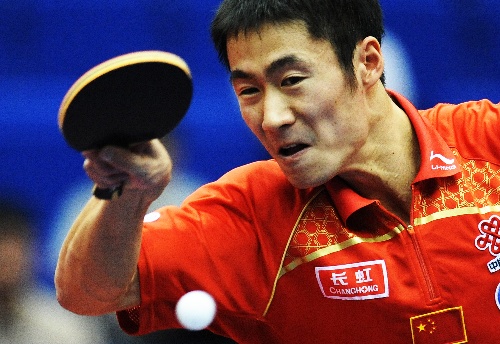横滨,2009年5月3日 (体育)(3)乒乓球——世乒赛:王励勤晋级四强 5月3日,中国选手王励勤在比赛中回球。当日,王励勤在第50届世乒赛男单四分之一决赛中,以4比3战胜队友陈玘,晋级四强。 新华社记者徐家军摄