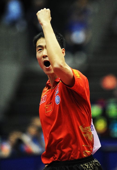 男单1/4决赛险胜陈玘 王励勤握拳怒吼