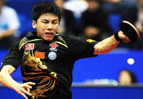 横滨,2009年5月3日 (体育)(3)乒乓球——世乒赛:陈玘无缘四强 5月3日,中国选手陈玘在比赛中。当日,陈玘在第50届世乒赛男单四分之一决赛中,以3比4不敌队友王励勤,无缘四强。 新华社记者徐家军摄