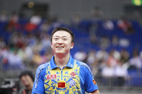 横滨,2009年5月3日 (体育)(4)乒乓球——世乒赛:马琳闯入四强 5月3日,中国选手马琳在比赛中。当日,马琳在第50届世乒赛男单四分之一决赛中,以4比2战胜韩国选手朱世爀,晋级四强。 新华社记者任正来摄