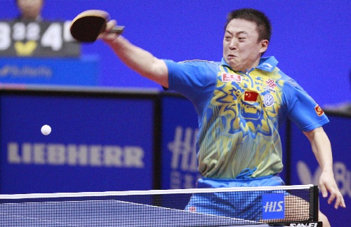 横滨,2009年5月3日 (体育)(5)乒乓球——世乒赛:马琳闯入四强 5月3日,中国选手马琳在比赛中。当日,马琳在第50届世乒赛男单四分之一决赛中,以4比2战胜韩国选手朱世爀,晋级四强。 新华社记者任正来摄