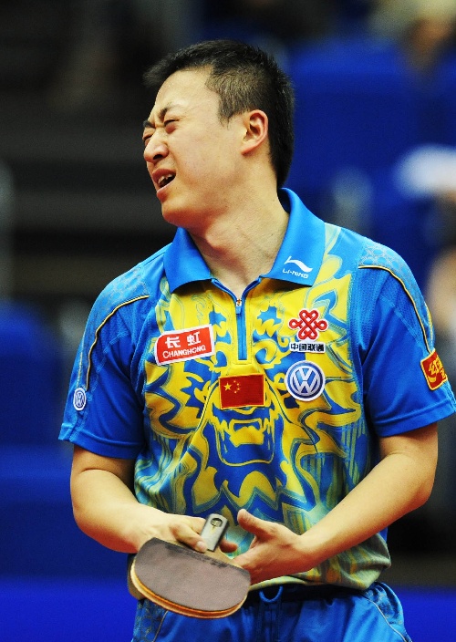 横滨,2009年5月4日 (体育)(8)乒乓球——世乒赛:马琳无缘男单决赛 5月4日,中国选手马琳在比赛中。当日,在第50届世界乒乓球锦标赛男子单打半决赛中,马琳以3比4不敌队友王励勤,无缘决赛。 新华社记者徐家军摄