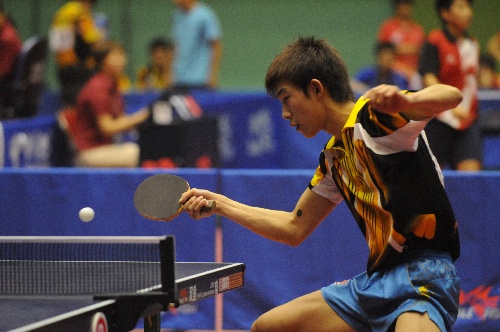 6月18日,北京铜牛(黄)队选手刘淼在比赛中。当日,在唐山举行的2009年中国乒乓球俱乐部甲A比赛(第二站)男子团体第一阶段比赛中,北京铜牛(黄)队以3比0战胜上海冠生园队。 新华社记者王民摄