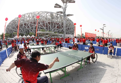 鸟巢万人乒乓球活动 残疾人选手也参加