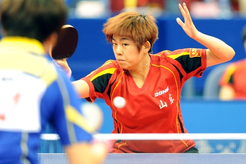 青岛,2009年9月24日   (体育)(8)全运会——乒乓球比赛开赛 9月24日,山东队队员曹臻在女子团体小组赛第一阶段比赛中以3比2战胜上海队队员姚彦。当日,第十一届全运会乒乓球比赛在山东青岛开赛。 新华社记者韩瑜庆摄