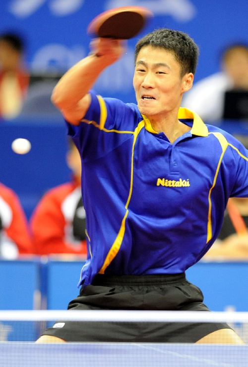 全运会乒球决赛次日 王励勤在比赛中