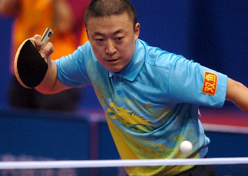 青岛,2009年9月26日 (体育)(1)乒乓球——全运会:广东队晋级男团四强 9月26日,广东队选手马琳在比赛中回球。当日,在第十一届全运会乒乓球男子团体1/4决赛中,广东队以3比1战胜天津队,晋级四强。 新华社记者郭晨摄