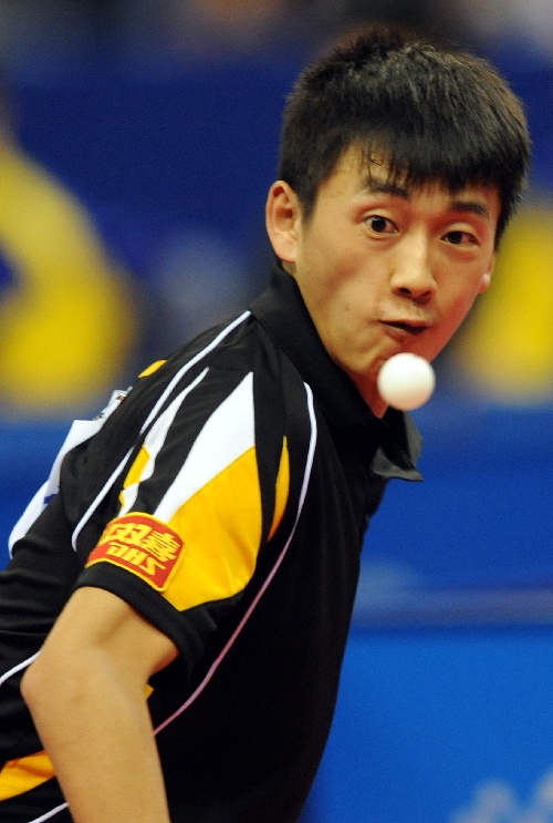 青岛,2009年9月27日 (体育)(2)乒乓球——全运会:山东队无缘男子团体决赛 9月27日,山东队选手吴颢在比赛中回球。最终,吴颢以2比3不敌解放军队选手张继科。当日,在山东青岛举行的第十一届全运会乒乓球男子团体半决赛中,山东队以0比3不敌解放军队,无缘决赛。 新华社记者朱峥摄