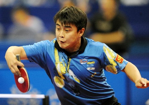 青岛,2009年9月27日 (体育)(1)乒乓球——全运会:解放军队晋级男子团体决赛 9月27日,解放军队选手王皓在比赛中回球。最终,王皓以3比1战胜山东队选手方博。当日,在山东青岛举行的第十一届全运会乒乓球男子团体半决赛中,解放军队以3比0战胜山东队,晋级决赛。 新华社记者朱峥摄