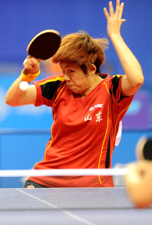 青岛,2009年9月27日 (体育)(5)乒乓球——全运会:山东队挺进女团决赛 9月27日,山东队选手曹臻在比赛中回球。当日,在山东青岛举行的第十一届全运会乒乓球女子团体半决赛中,山东队以3比1战胜辽宁队,挺进决赛。 新华社记者韩瑜庆摄