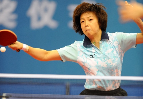 青岛,2009年9月28日 (体育)(1)乒乓球——全运会:北京队夺得女团冠军 9月28日,北京队选手张怡宁在比赛中回球。当日,在青岛举行的第十一届全国运动会乒乓球女子团体决赛中,张怡宁以3比1战胜山东队选手彭陆洋。最终,北京队以3比0战胜山东队,夺得冠军。 新华社记者韩瑜庆摄