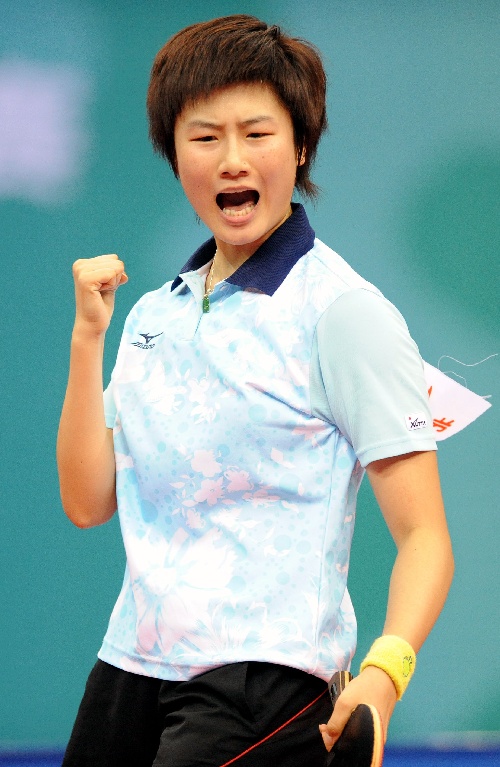 青岛,2009年9月28日   (体育)(4)乒乓球——全运会:北京队获女团冠军 9月28日,北京队选手丁宁以3比0战胜山东队选手李晓霞后庆祝胜利。当日,在青岛举行的第十一届全国运动会乒乓球女子团体决赛中,北京队以3比0战胜山东队,荣获冠军。 新华社记者朱峥摄