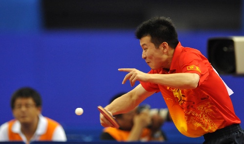 青岛,2009年9月28日 (体育)(4)乒乓球——全运会男团决赛赛况 9月28日,广东队选手张超在比赛中回球。当日,在青岛举行的第十一届全国运动会乒乓球男子团体决赛中,广东队以2比3不敌解放军队,获得亚军。 新华社记者陈晔华摄