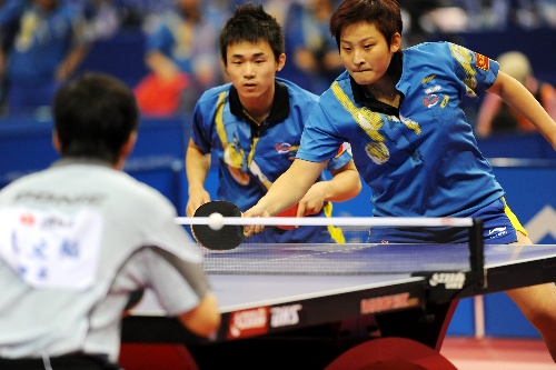 青岛,2009年9月29日 (体育)(2)乒乓球——全运会:解放军队选手徐克/刘纯晋级混双四强 9月29日,解放军队选手刘纯(右)在比赛中回球。当日,在青岛举行的第十一届全国运动会乒乓球混合双打1/4决赛中,徐克/刘纯以3比1战胜湖北队选手朱文韬/饶静文,晋级四强。 新华社记者韩瑜庆摄