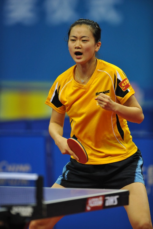 青岛,2009年9月29日 (体育)乒乓球——全运会女单:彭陆洋胜罗玥 9月29日,山东队选手彭陆洋在比赛中庆祝得分。当日,在山东青岛举行的第十一届全运会乒乓球女子单打比赛中,彭陆洋以4比3战胜湖北队选手罗玥,晋级下一轮。 新华社记者陈晔华摄