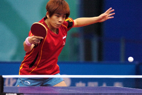 青岛,2009年9月29日 (体育)(2)乒乓球——全运会:曹臻胜常晨晨 9月29日,山东选手曹臻在比赛中。当日,在山东青岛举行的第十一届全运会乒乓球女子单打比赛中,曹臻以4比2战胜辽宁队选手常晨晨,晋级下一轮。 新华社记者郭晨摄