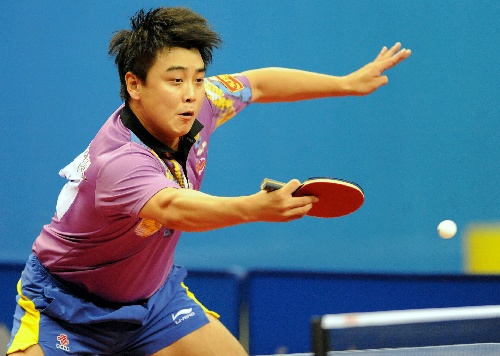 青岛,2009年9月29日 (体育)(3)乒乓球——全运会男单:王皓胜白鹤 9月29日,王皓在比赛中回球。当日,在山东青岛举行的第十一届全运会乒乓球男子单打比赛中,解放军队选手王皓以4比1战胜江西队选手白鹤。 新华社记者朱峥摄