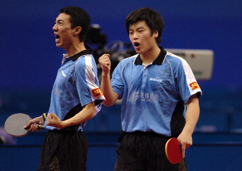 全运乒球男双1/4决赛 两人怒吼庆胜